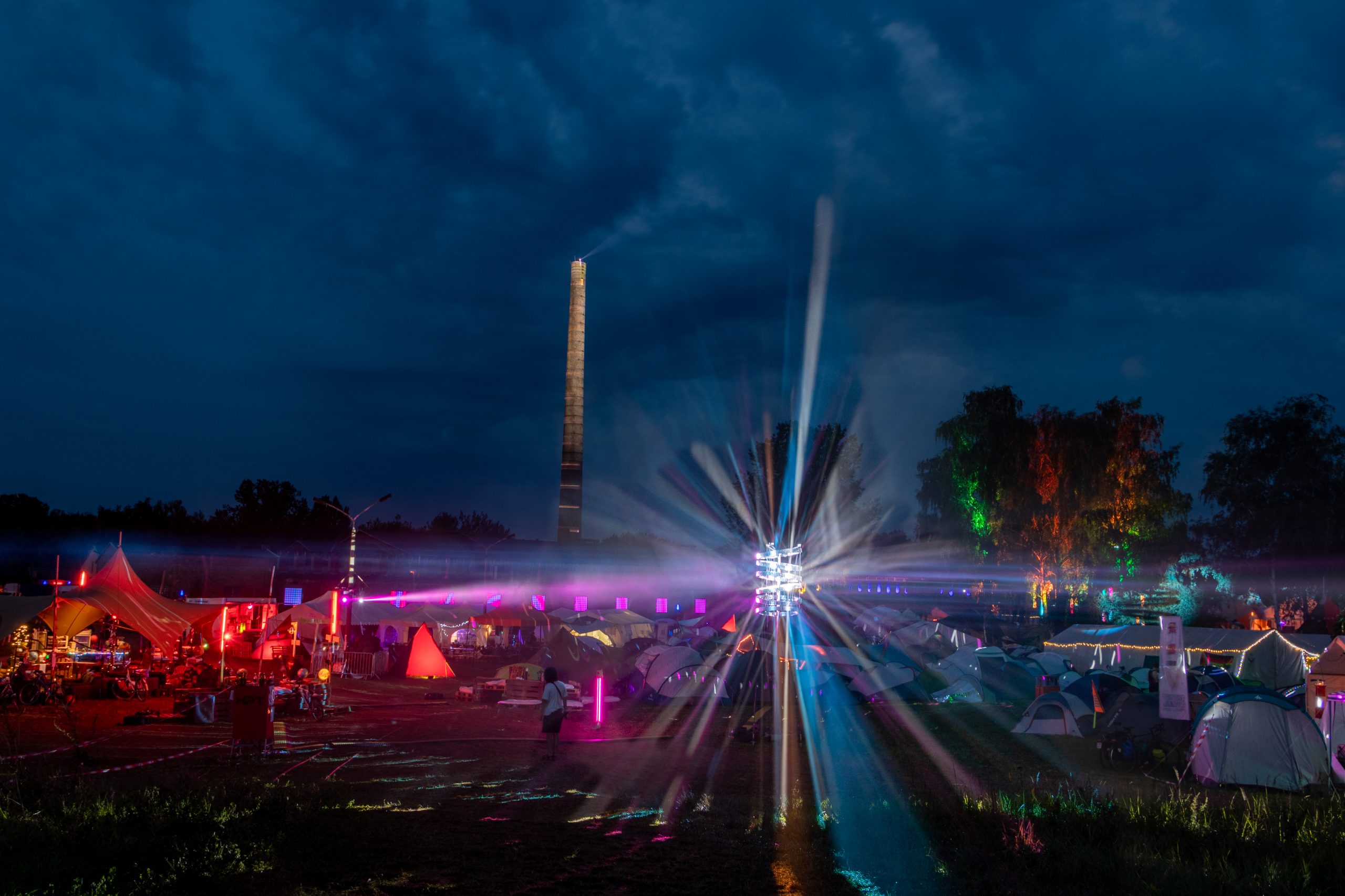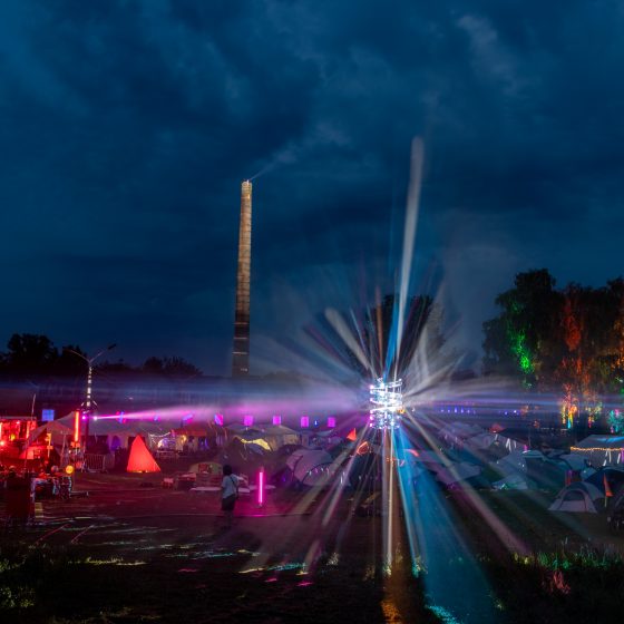 Während auf der Wiese die Glasfasertrommeln rollten, baute Jugend hackt gemeinsam mit dem Verstehbahnhof das Jugend-Village auf. Einige der Jugendlichen reisten bereits zum Aufbau mit an und halfen nicht nur dabei, die Zelte für alle aufzustellen, sondern auch bei uns Strom und Glasfaserkabel zu verlegen und unsere Beleuchtung und Bühnentechnik aufzubauen. So konnte das in Regenbogenfarben beleuchtete Jugend-Village neben den vielen Lichtinstallationen des Camps mithalten.
