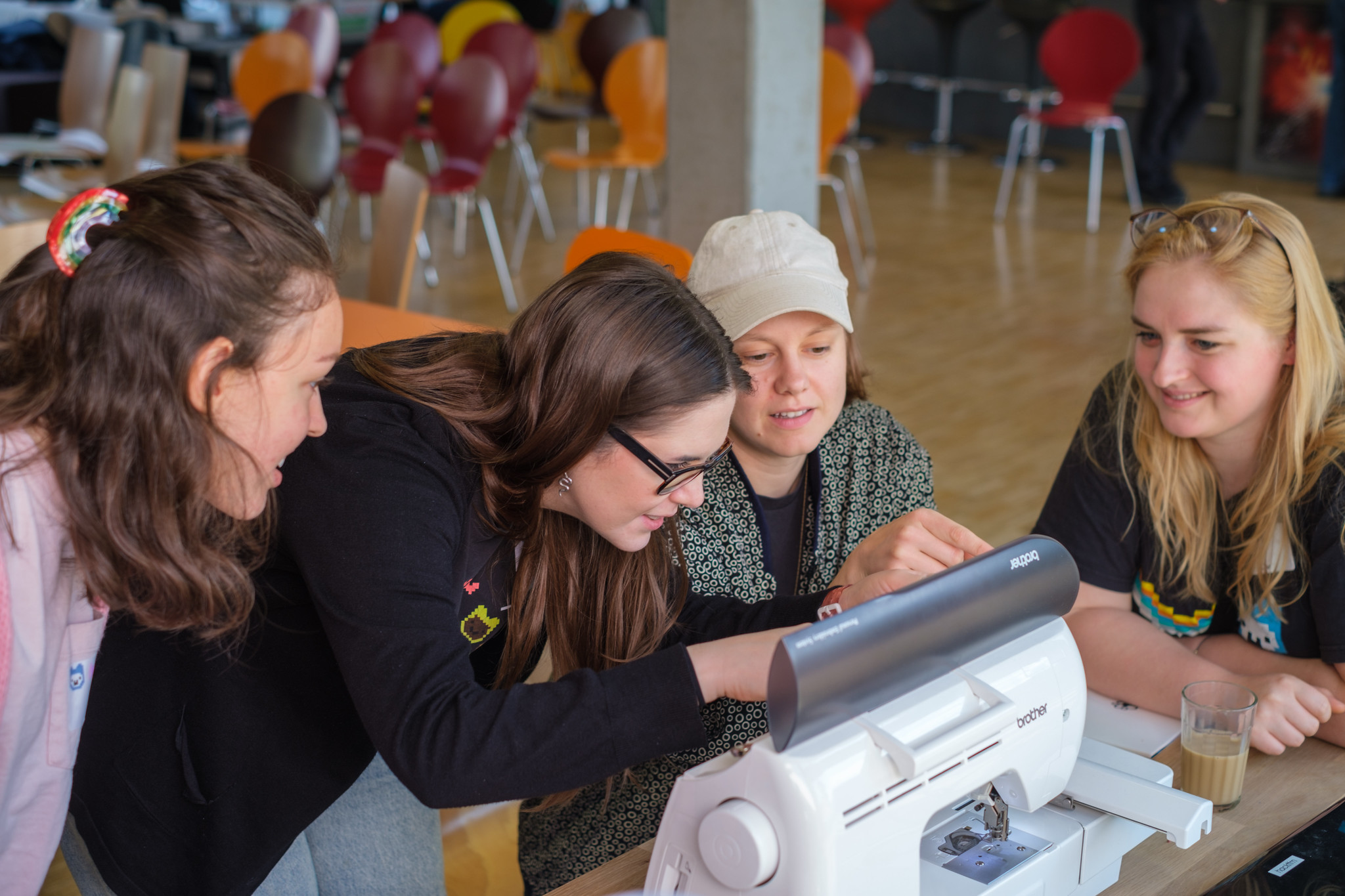 Zum dritten Mal zu Gast im Jugendhaus Riedberg startete Jugend hackt 2024 in Frankfurt durch den Pfingstfeiertag erst am Samstag. Der Vorteil hierbei: Samstags ist keine Schule und es kann schon um 11 Uhr losgehen! Beim Vorprogramm gab es viel zu entdecken. Auf die Räume des Jugendhauses aufgeteilt waren verschiedene kleine Workshops und Tutorials im Angebot. Die Jugendlichen konnten sich aussuchen, auf was sie gerade am meisten Lust haben und hatten dabei die Wahl zwischen einem HTML-Tutorial, einer OpenStreetMap-Wanderung, einer Einführung für die Stickmaschine, die auch das restliche Event über fleißig weiter stickte und vielem mehr. Dabei konnten die Jugendlichen erste Eindrücke sammeln und vielleicht schon ein paar Projektideen für die restlichen Tage festhalten.