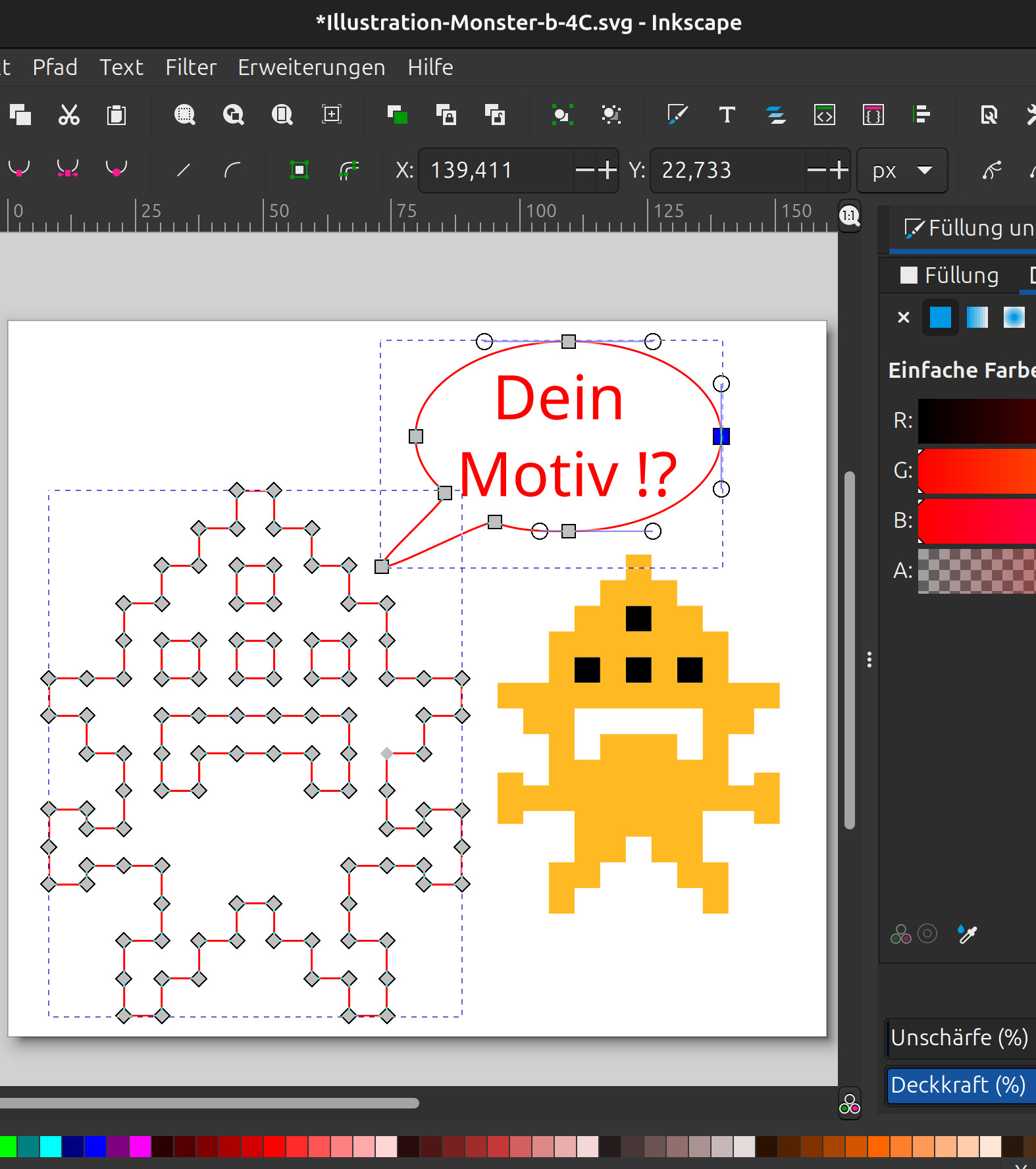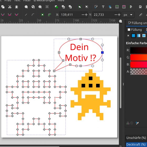 In unserer Werkstatt gibt es viele Maschinen, für die du dein Motiv als Vektorgrafik brauchst. Was das genau bedeutet, und wie du deine eigenen Vektorgrafiken erstellen kannst, lernst du in diesem Workshop. Du kannst dein eigenes Motiv dann auch direkt mit nach Hause nehmen: zum Beispiel als Aufkleber aus dem Schneideplotter, oder mit dem Lasercutter ausgeschnitten aus Holz.