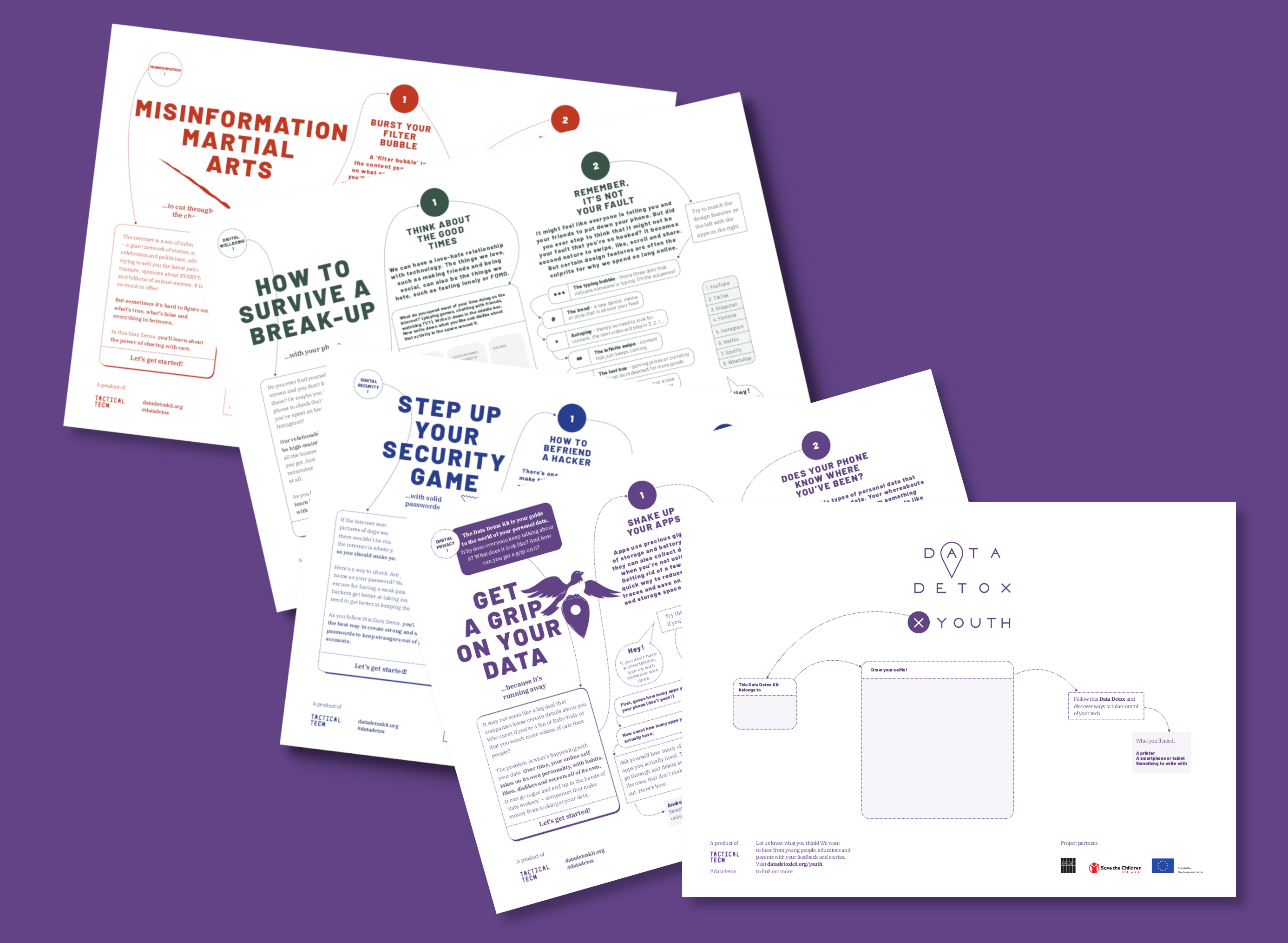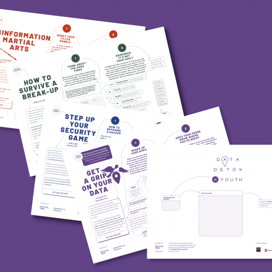Das Data Detox Kit ist ein interaktives Arbeitsbuch für junge Menschen um Kontrolle im Umgang mit Technik zu erlangen. Es regt zum Nachdenken über verschiedene Aspekte des digitalen Lebens an, von Social Media bis hin zu sicheren Passwörtern.